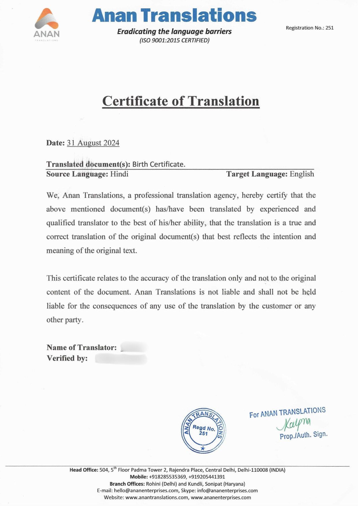 ✅ Process: After completing the translation, we will email scanned copies for review before shipping, followed by delivering the hard copies across India and internationally.