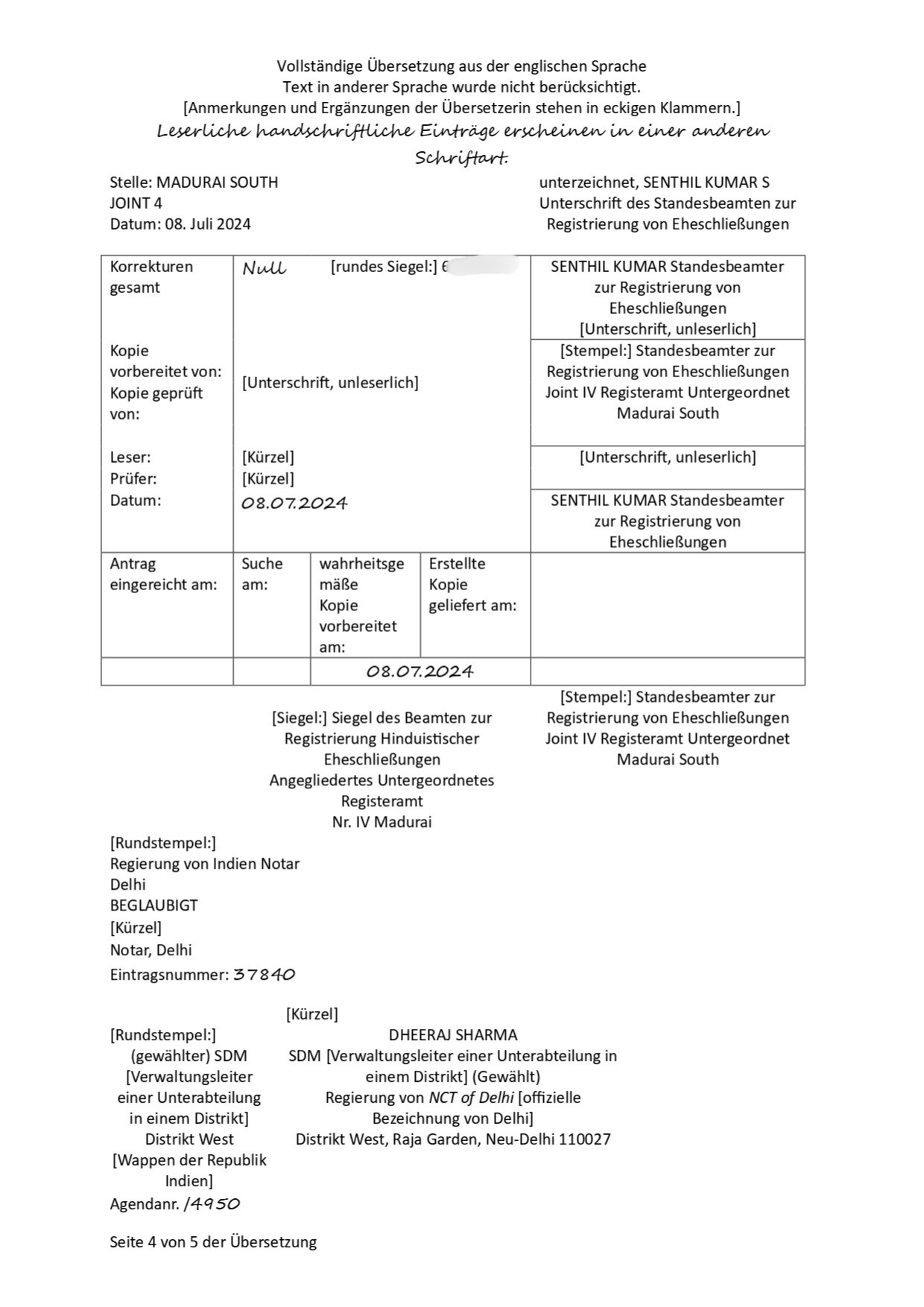 Once the translation is complete, we’ll send you a draft via email for your review. This gives you the opportunity to verify details, such as name spellings, before finalizing. - Approval and Printing: